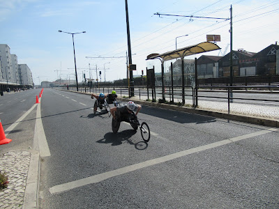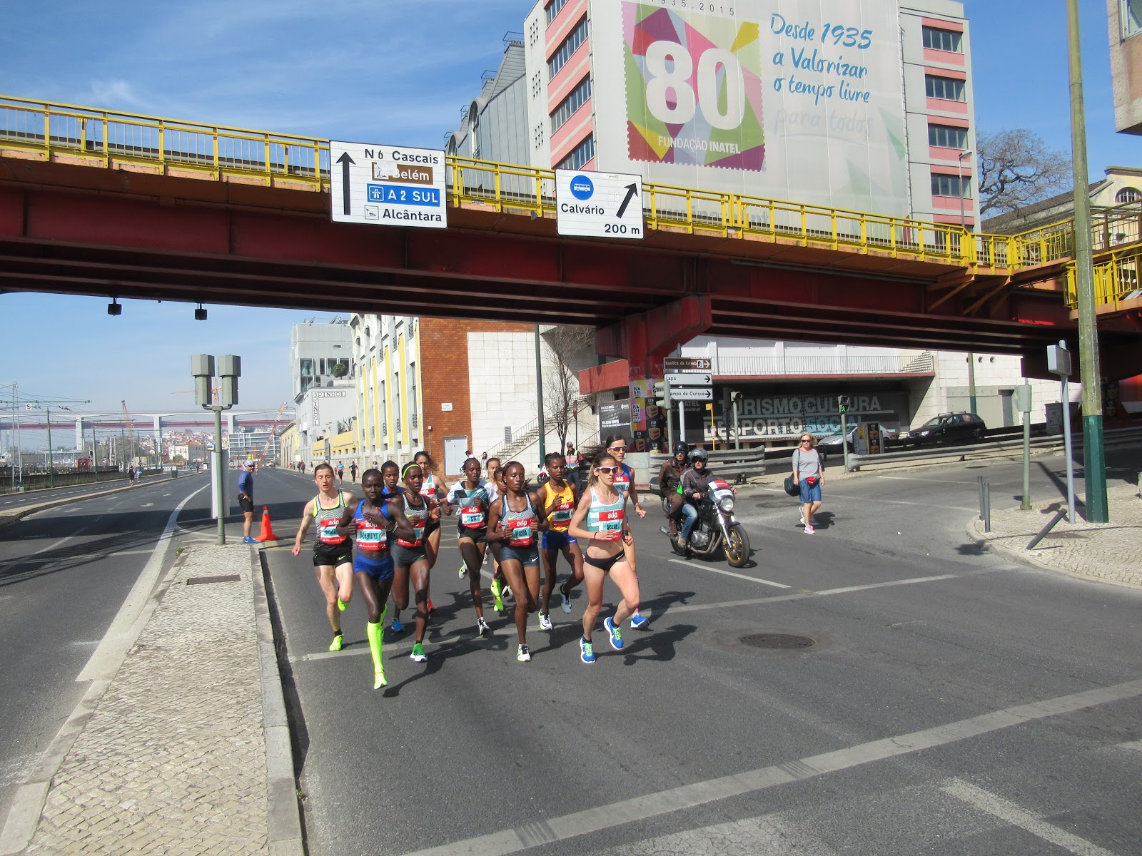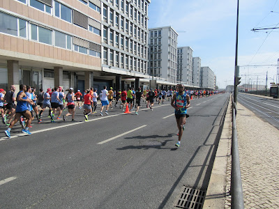 Naqueles escassos cerca de dois km que separam a EPAL da Ponte Dona Amélia onde eu teria de atravessar para a margem sul do Tejo fui avançando na minha motorizada, parando, esperando pela Analice e batendo-lhe palmas, fiz isso n vezes e de todas elas ganhei um sorriso maravilhoso e esta imagem que guarda desta atleta extraordinária, deste ser humano excepcional, desta Brasileira que nunca parava.